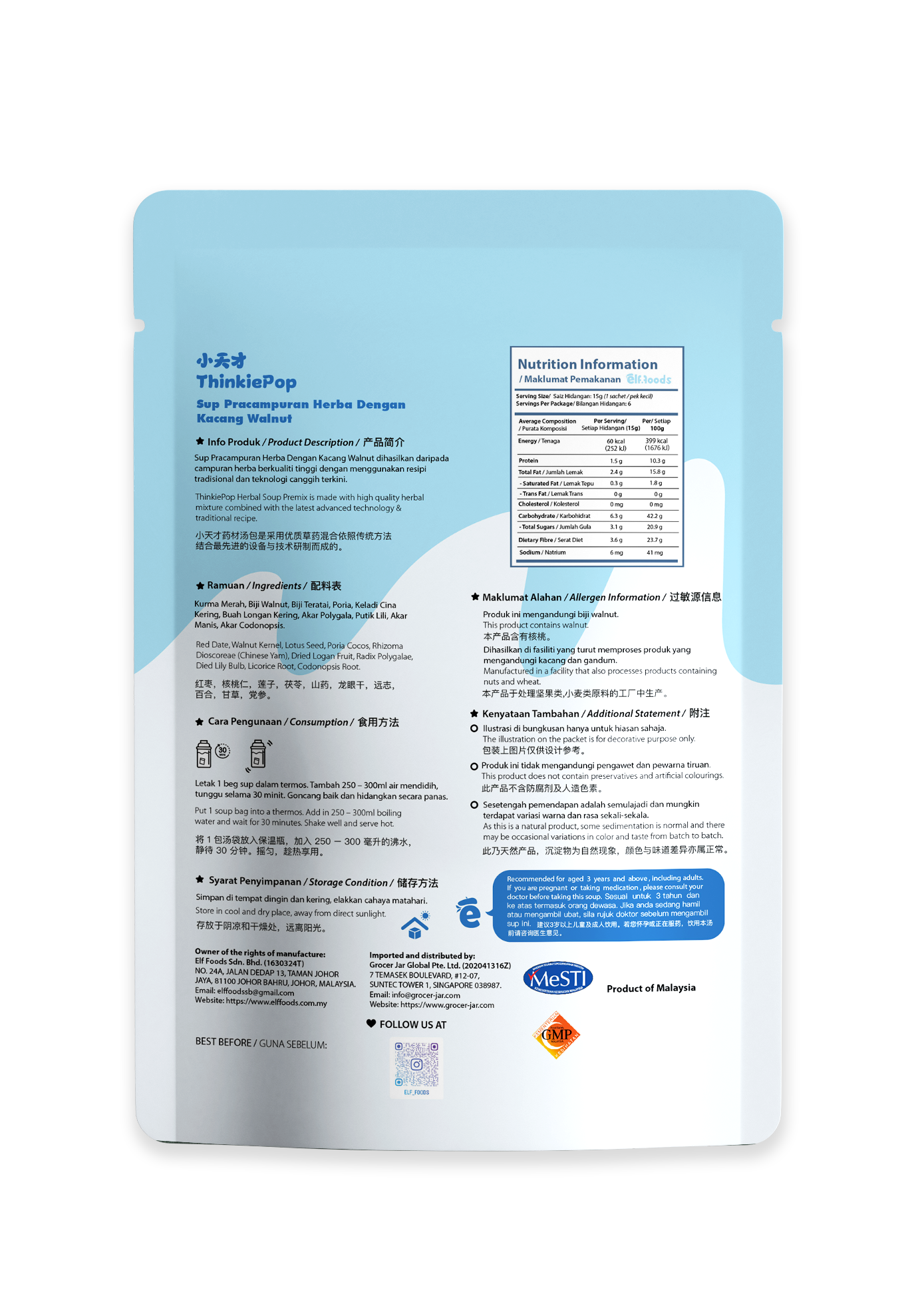 Net Weight: 15g x 6 sachets